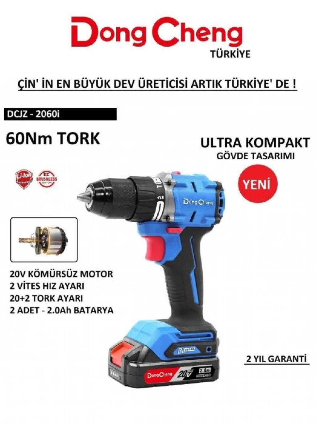 Dong Cheng DCJZ 20160i 20v 4Ah Darbeli Kömürsüz Motor Şarjlı Matkap, Ultra Kompakt Boyut, Ultra Performans, Sınıfının En Güçlüsü