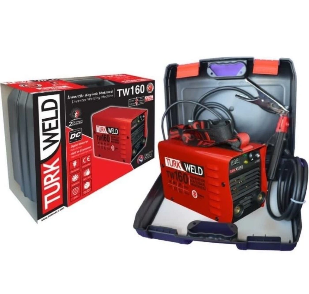 Türkweld TW160 inverter kaynak makinası, Metalleri ve farklı alaşımları birleştirme amacı ile üretilmiş olan kaynak makineleri istikrarlı kaynak akımı sağlayarak işlerin hızlı ve etkili bir şekilde gerçekleşmesini sağlamaktadır. Yüksek kalitede kaynak yapma imkanı sunan Turkweld Tw160 İnverter Kaynak Makinesi, enerji tasarruflu olması ile de oldukça kullanışlıdır. Turkweld Tw160 İnverter Kaynak Makinesi 'nin kullanımında elektrotun malzemeye yapışması durumunda otomatik olarak akım düşmekte ve malzemeden kolaylıkla ayrılmaktadır. Kaliteli malzemeden üretilmiş olan kaynak makinesi, oldukça sağlam ve dayanıklıdır. Uzun yıllar kullanım imkanı sunan Turkweld Tw160 İnverter Kaynak Makinesi, birleştirme işlemlerini gerçekleştirmek adına en ince ayrıntısına kadar düşünülerek tasarlanmıştır.