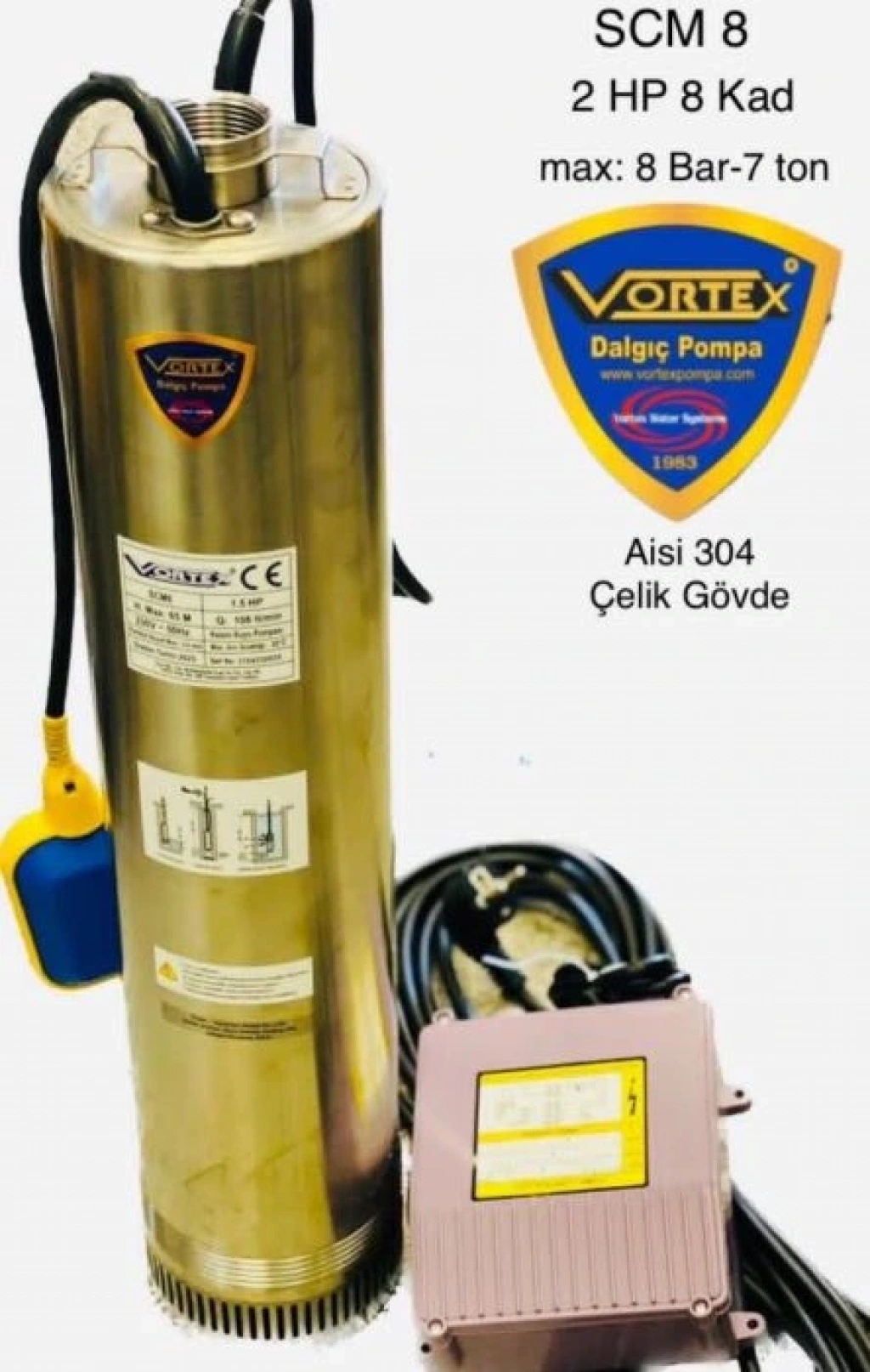 Vortex SCM 8 2HP Çelik Gövdeli Keson Kuyu Dalgıç Pompası